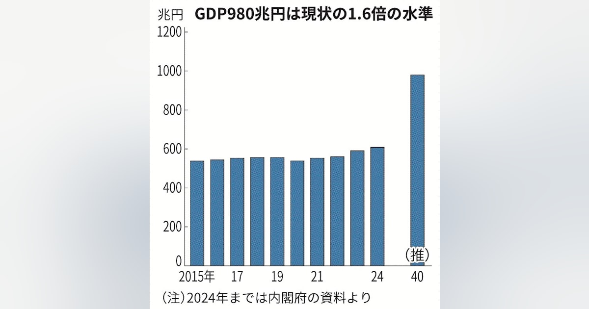 その中で「40年までに日本企業による国内投資200兆円の官民目標を実現すれば、名目のGDPが980兆円程に拡大すると推計した」と報じられています。
