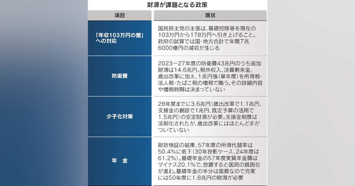 「国民民主党」の「103万円の壁」についての議論も始まっていますが、これらの財源は7~8兆円とも報じられていますね。