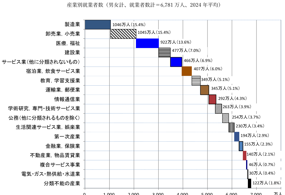 さて皆さん、現在の「日本」で「最大の就業者数」を抱える「業種」は何でしょうか?
