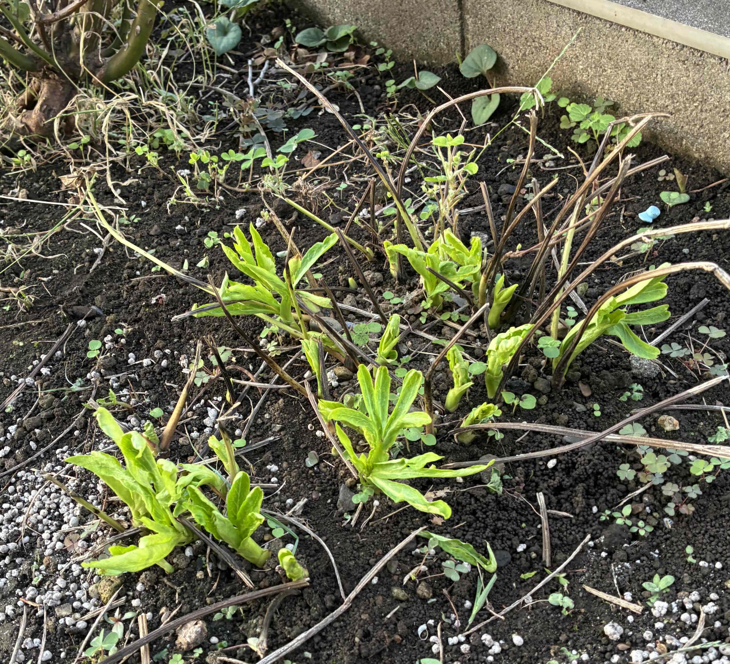 下記に「クリスマスローズの芽のフォト」を添付しますね。まぶしいぐらいに「青々」とした芽が土の中から飛び出してきていますよ。