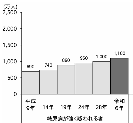 そうしましたら、何と「糖尿病が強く疑われる20歳以上の男女が約1100万人と推計される」とあるのですよ。
