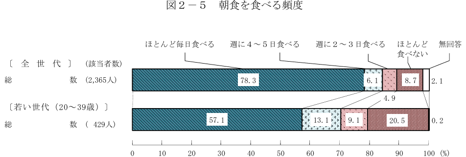 うーん、確か「若者は朝食をほとんど食べないが20%」もいましたよね。