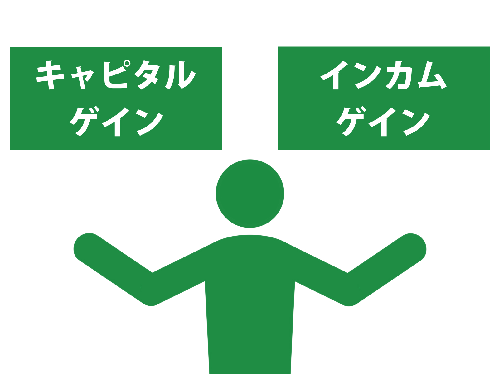 多くの皆さんがおやりになっている「投資信託」や「株式保有」で得られる「配当や利息など」は、「インカムゲイン」と呼ばれる別物なのですよ。