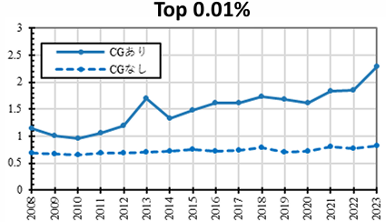 そうしましたら、この記事は「一橋大学の森口千晶教授」の試算で「所得上位0.01%のシェアは2023年時点で2.28%だった。アベノミクスが始まる12年の1.19%から倍近く上昇した」と報じています。