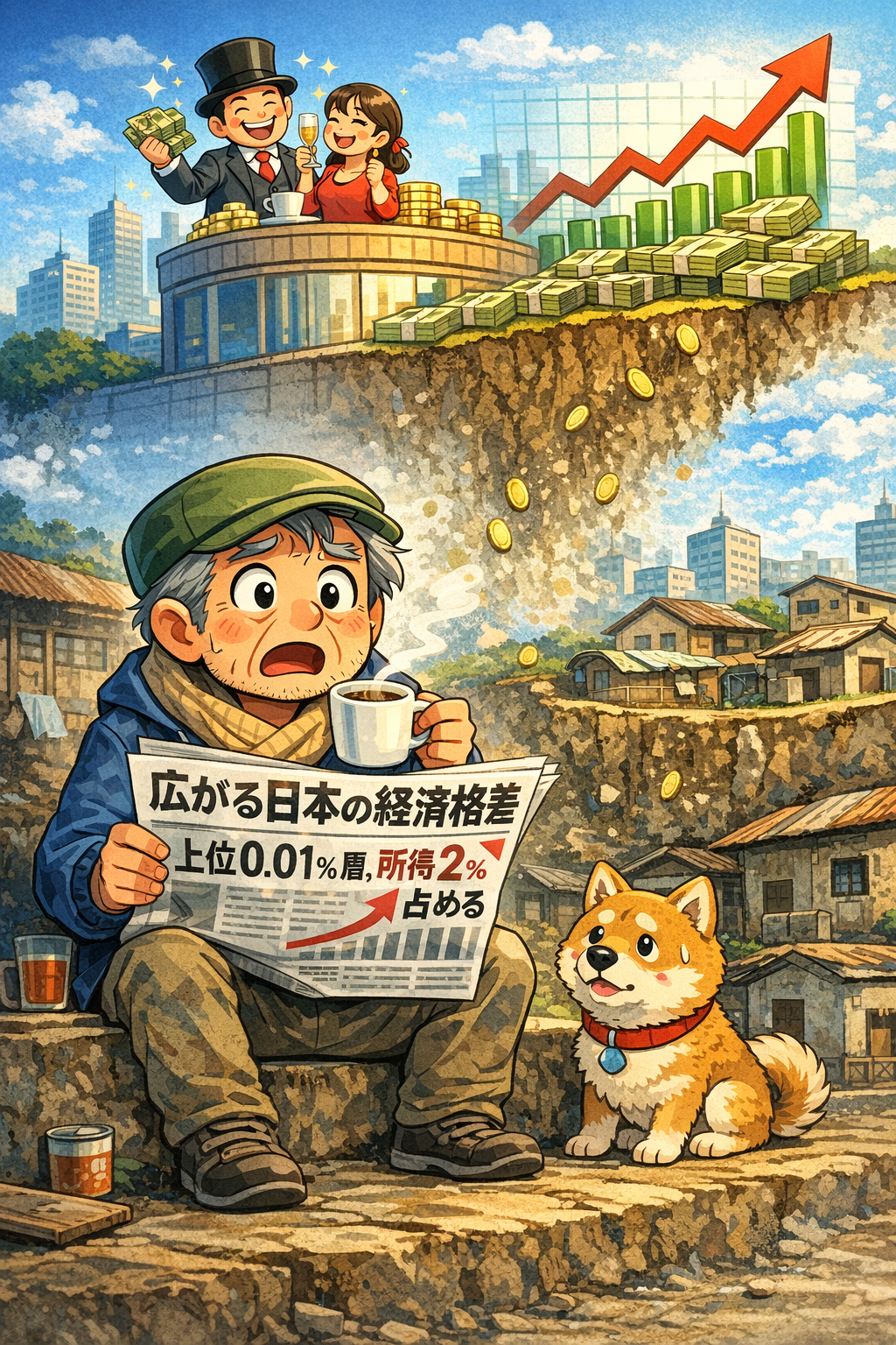 コロちゃんが、朝コーヒーを飲みながら新聞をバサバサ読んでいると「広がる日本の経済格差/上位0.01%層、所得2%を占める」との見出しが目に入りました。