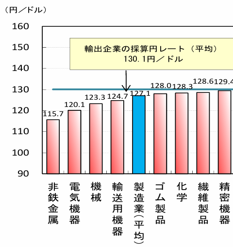 一番「採算円レートが低い(円安で利益が膨らむ)企業」は、「➀非鉄金属の115円」ですよね。