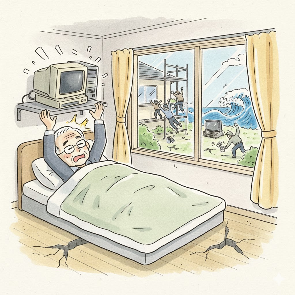 それがいきなり「グラグラ」というよりは、家全体が「ミシミシ」と軋むようなショックで目が覚めたんですよ。