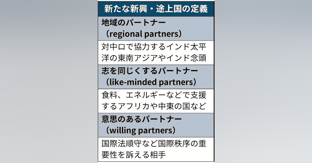 「意思あるパートナー」は、「法の支配に基づく国際秩序」で連携する国というのですが、詳細はまだ明らかにされていません。