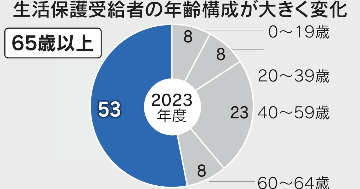 まず、この記事では「生活保護を受ける人の過半が65歳以上の高齢者」となったと現状をかいています。