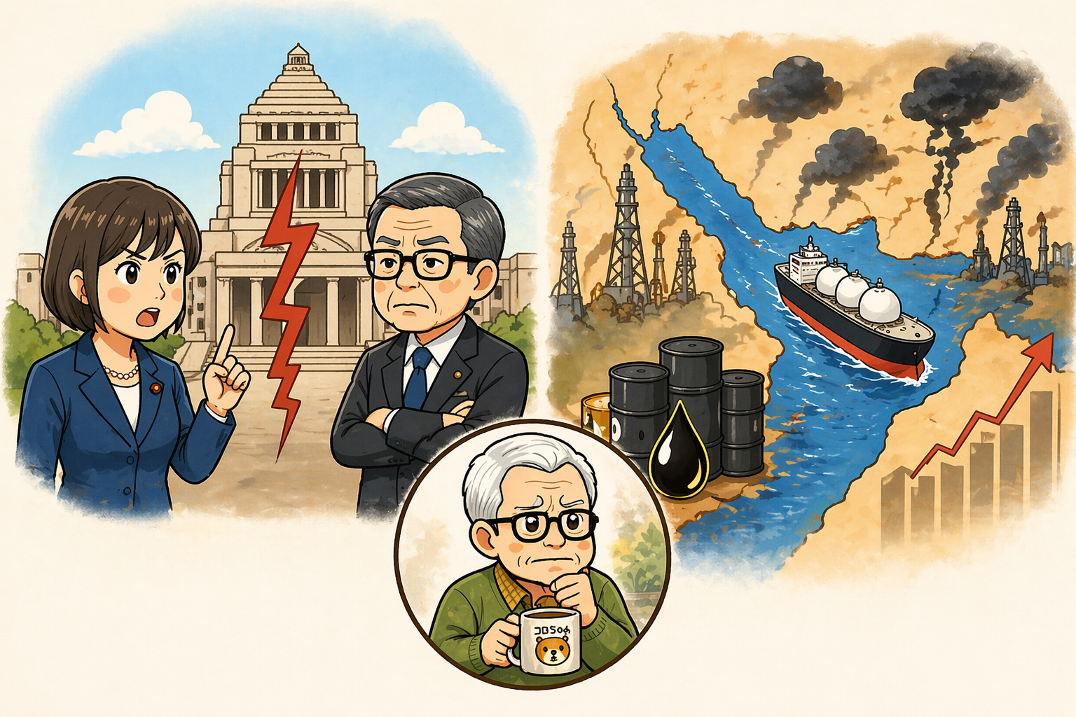 だって、この「中東情勢への対応」と「給付付き税額控除」は、現在の「政治の焦点」ですよね。