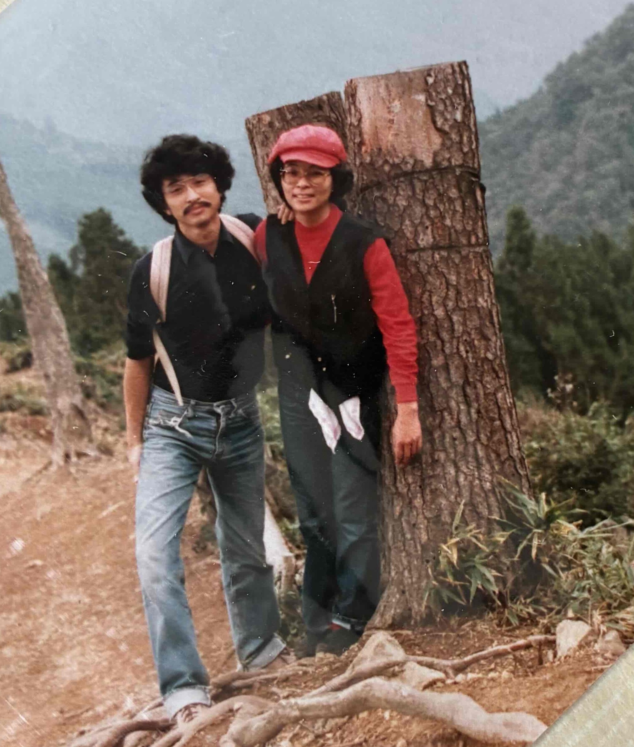 コロちゃんと妻の足元を拡大してみると、履いているのは「トレッキングシューズ」です。この「1974年頃」のコロちゃん夫婦は、「毎週」のように「トレッキング」に出かけていましたよ。