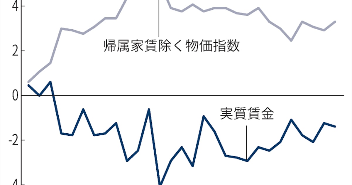 「数値の動きが乏しい持ち家の帰属家賃を外すと、インフレ率が大きくなり実質賃金は低くなりやすい」