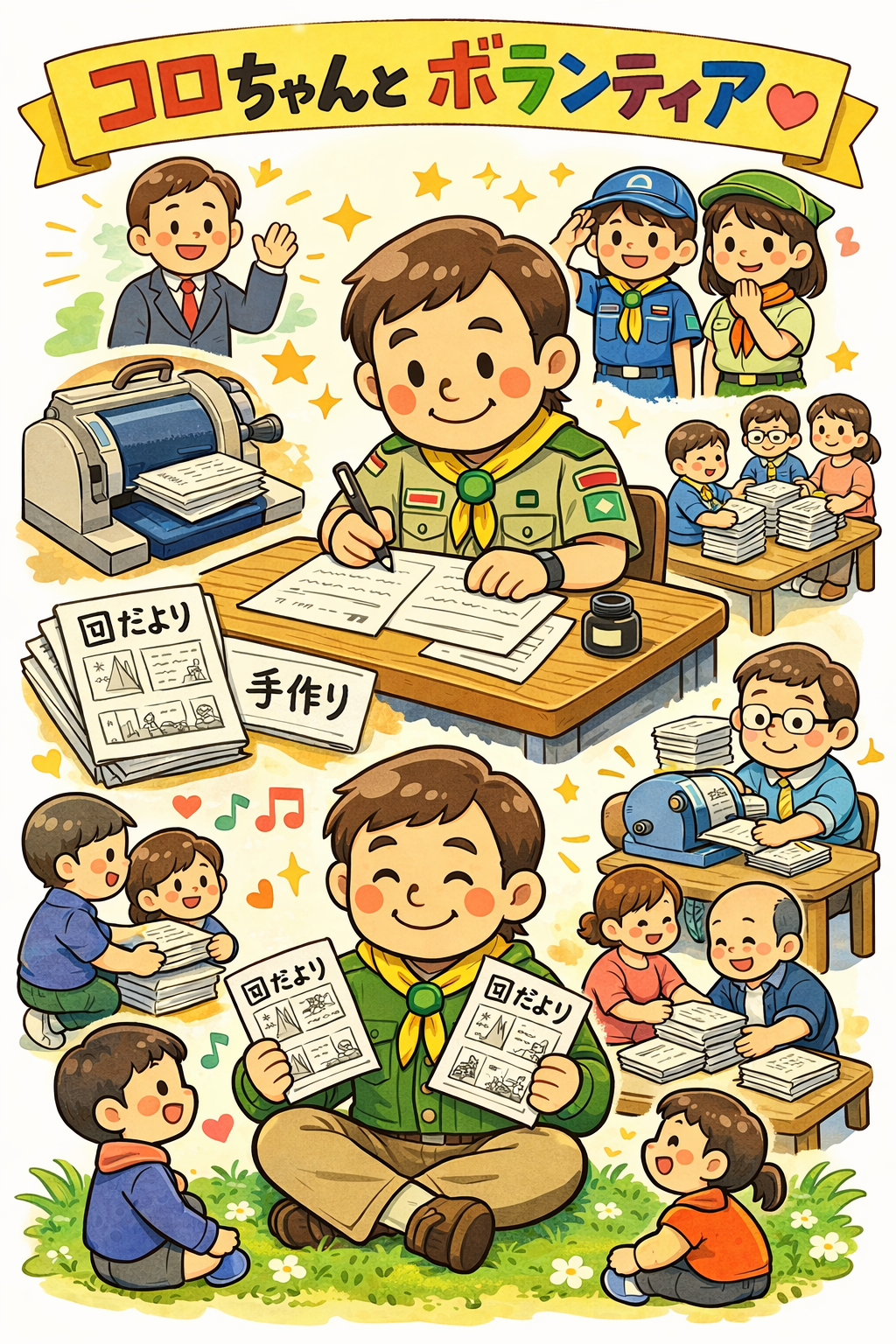 コロちゃんは、必ず「スカウト(子どもたち)」の原稿もセットでお願いして、集めて回りましたよ。