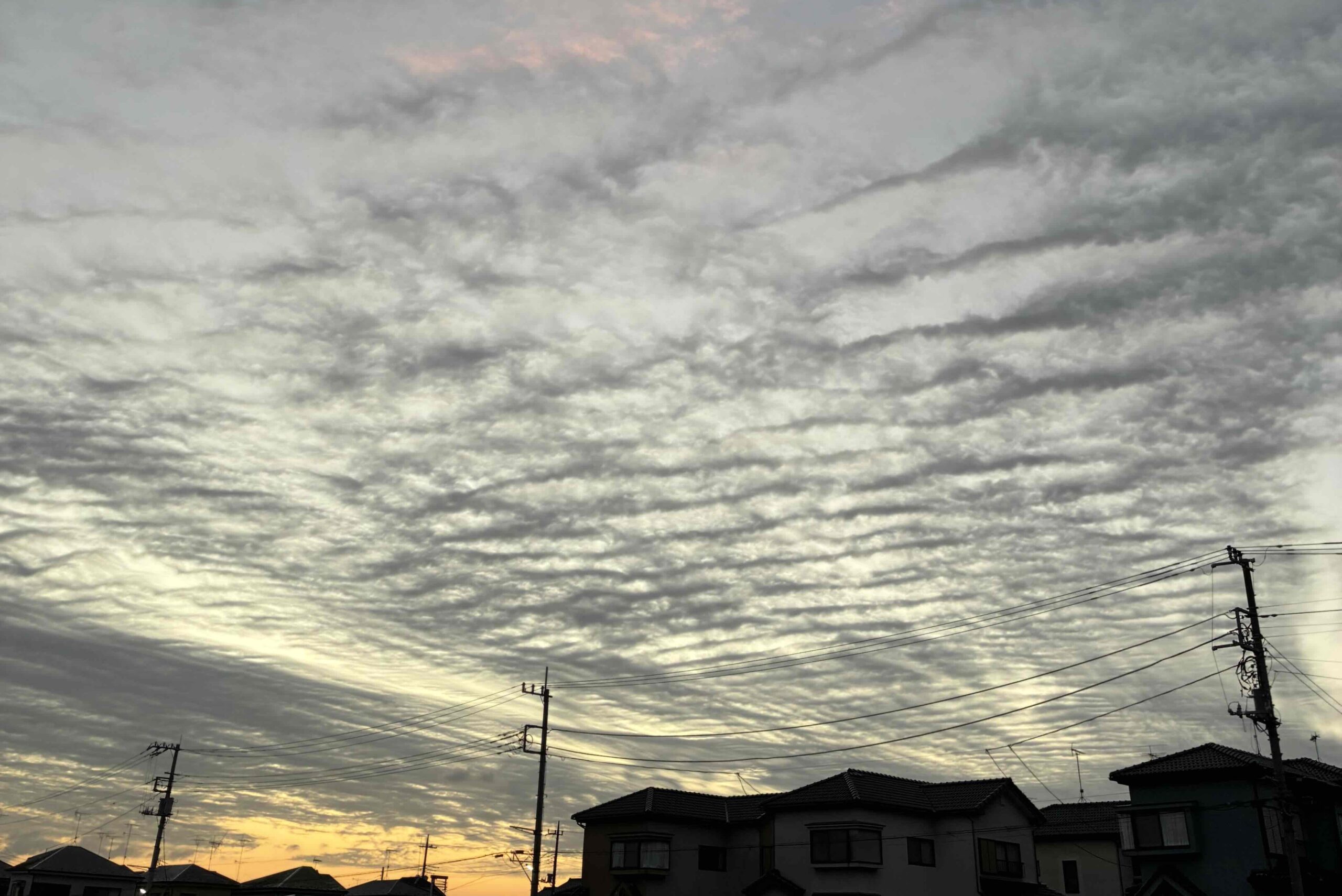 なお、今朝の「筋雲」のフォトを下記に添付しますね。空一面に広がるキレイな筋雲でしたよ、ご覧くださいね。