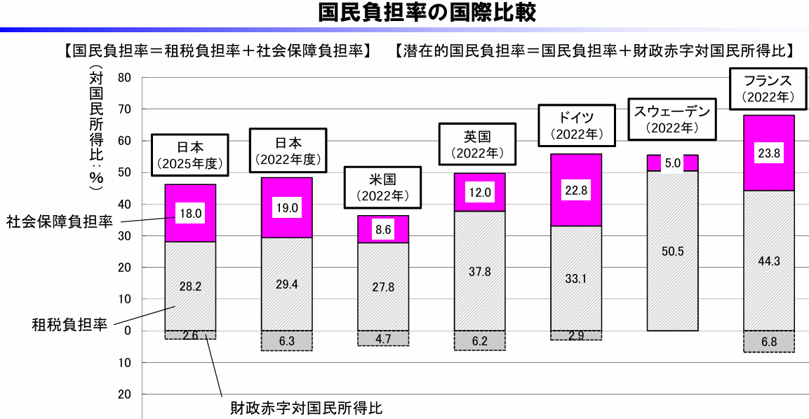 (出典:財務省 国民負担率の国際比較より:10月14日利用)
