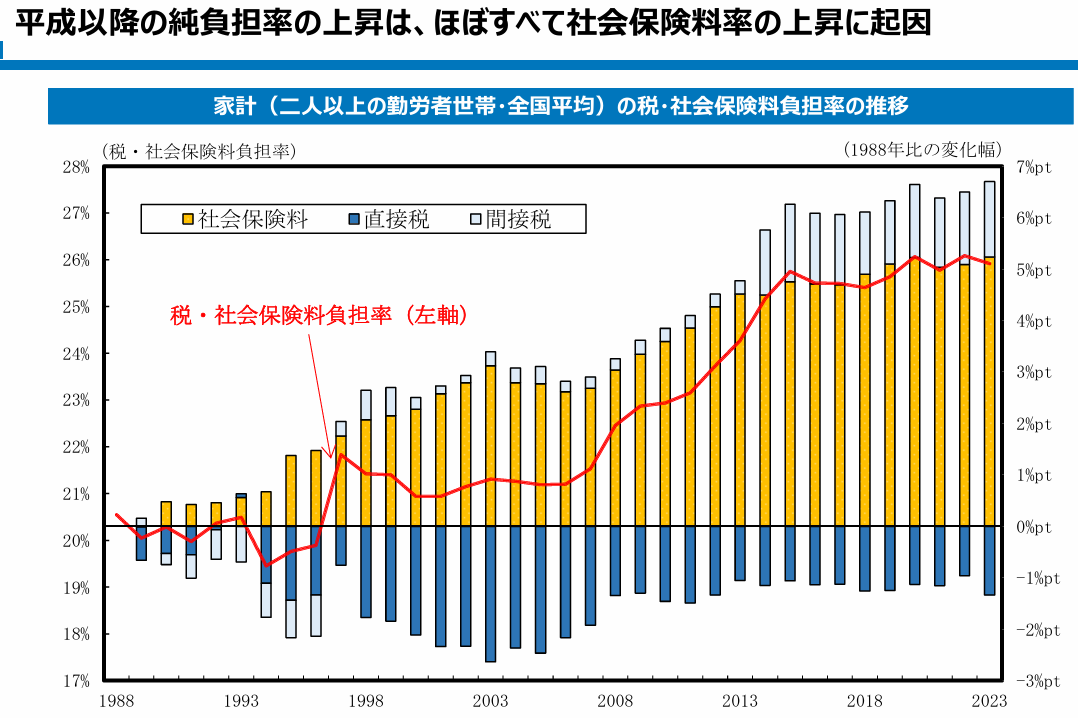 「内閣官房 家計の税・社会保険料負担率の推移」より