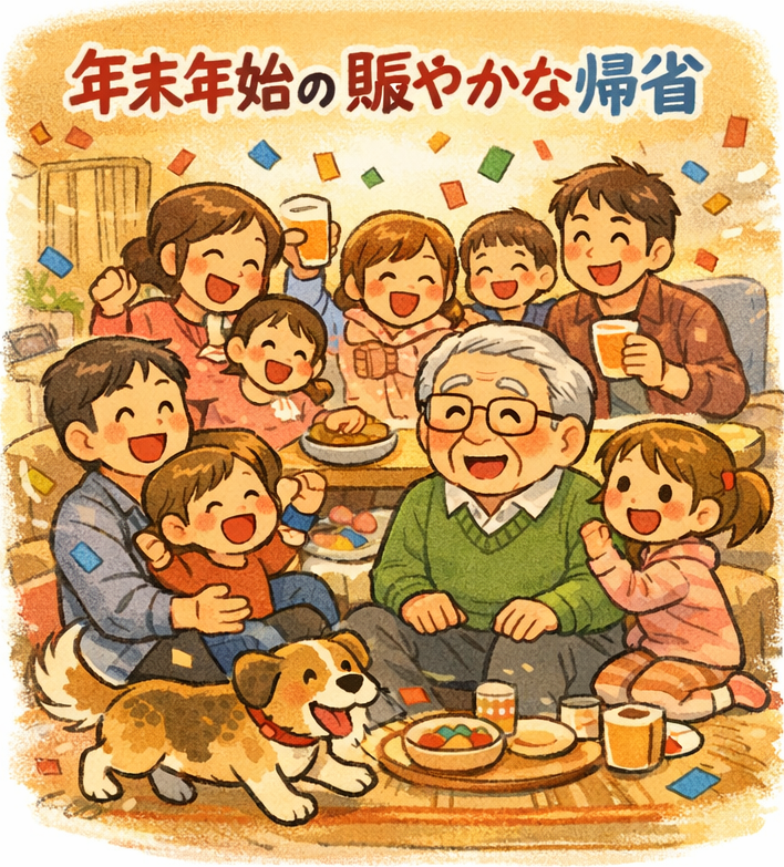 コロちゃんちには、昨年末に「次男一家の面々」が帰省してきて、ほぼ毎日「長男一家の面々」が出入りしていましたので、総勢「10名」がコロちゃんちの狭い「居間」にたむろしていたのですよ。
