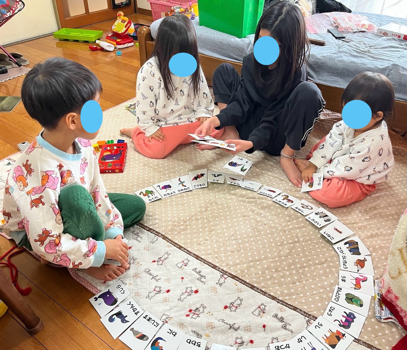 この日の夜は、子どもたち4人で仲良く遊んでからお休みタイムとなりましたよ。