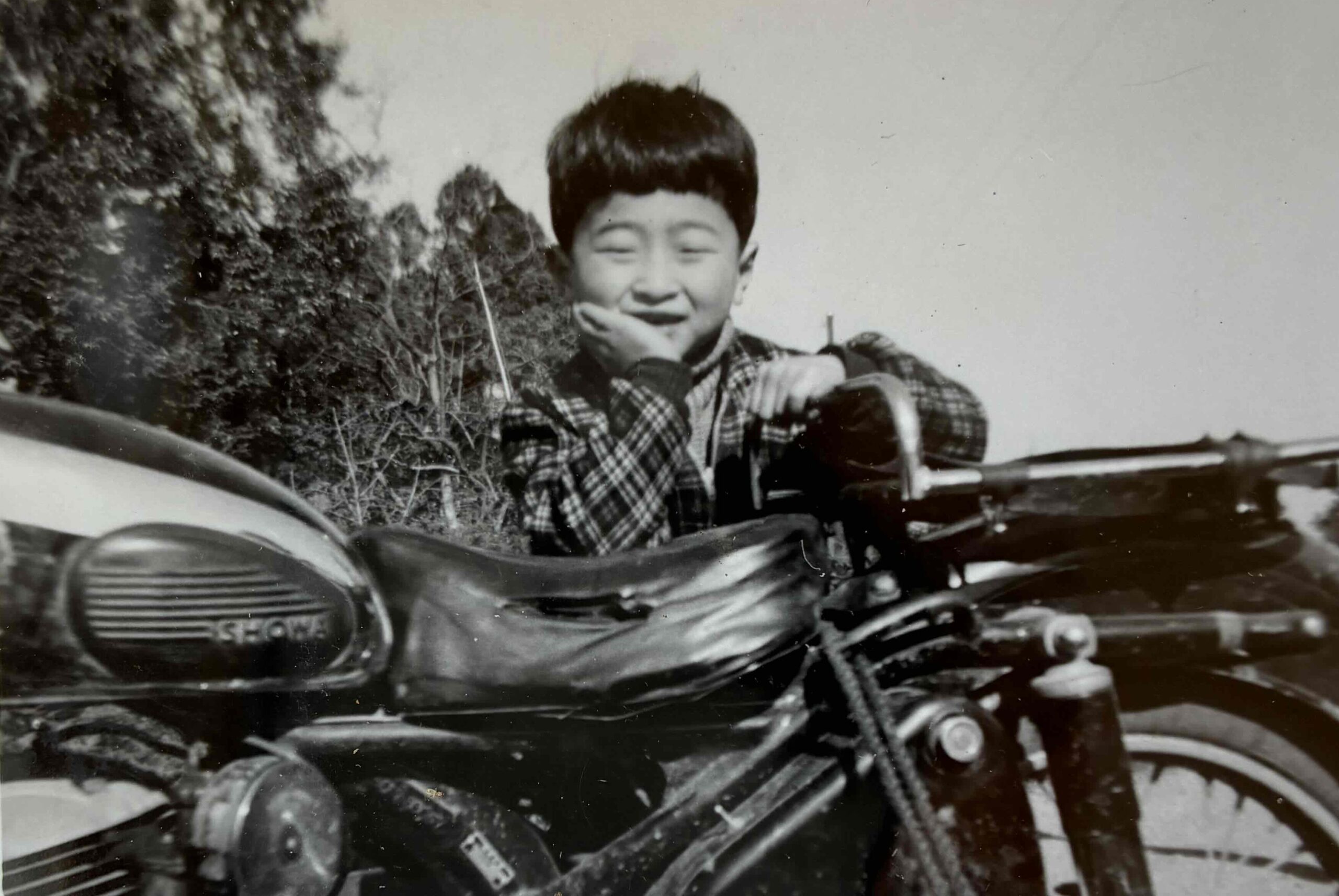 自慢げに触っているオートバイには「SHOWA」のエンブレムが見えますよね。この会社は当時「マン島TTレース」に出場するなど、人気のある「オートバイメーカー」でしたよ。