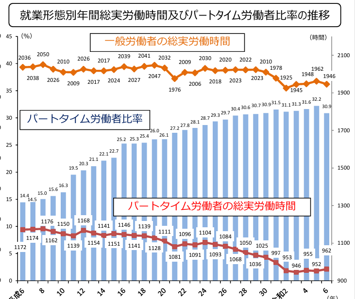 これって年々「短時間勤務のパート労働者」が増えているってことですよね。