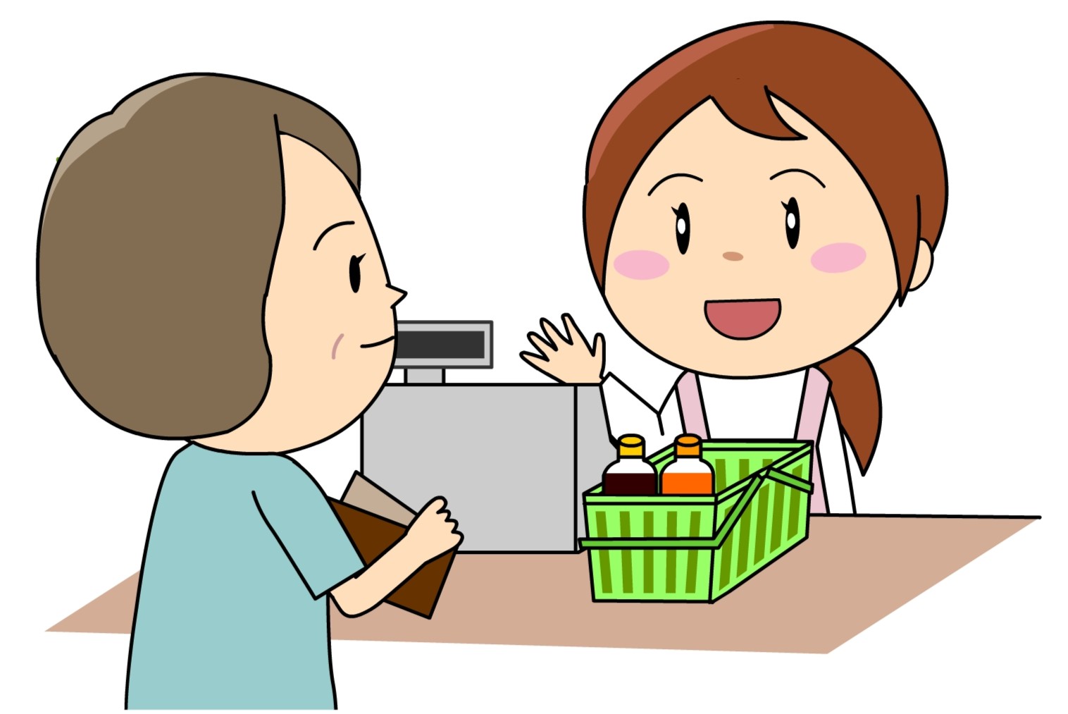 右手で商品を持ち、素早くスキャンしてから、左手で籠にキレイに積んで入れていますよね。