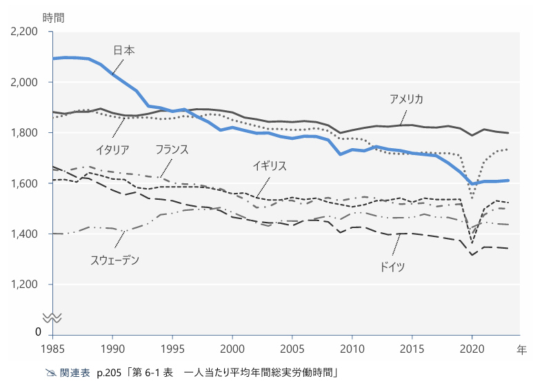 うーむ、上記を見ると、確かに2024年には日本が米国よりも「1人あたり平均労働時間は179時間も短く」なっていますね。
