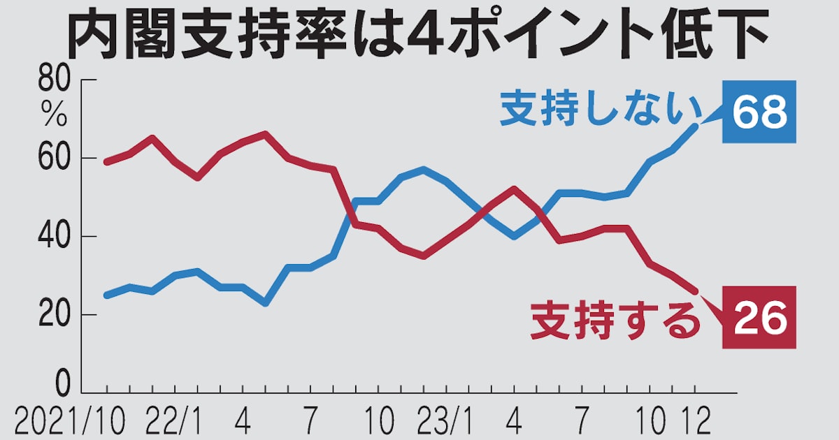 コロちゃんが、新聞を読んでると「岸田総理の内閣支持率が、26%と政権発足以来最低を記録した」と報じていました。