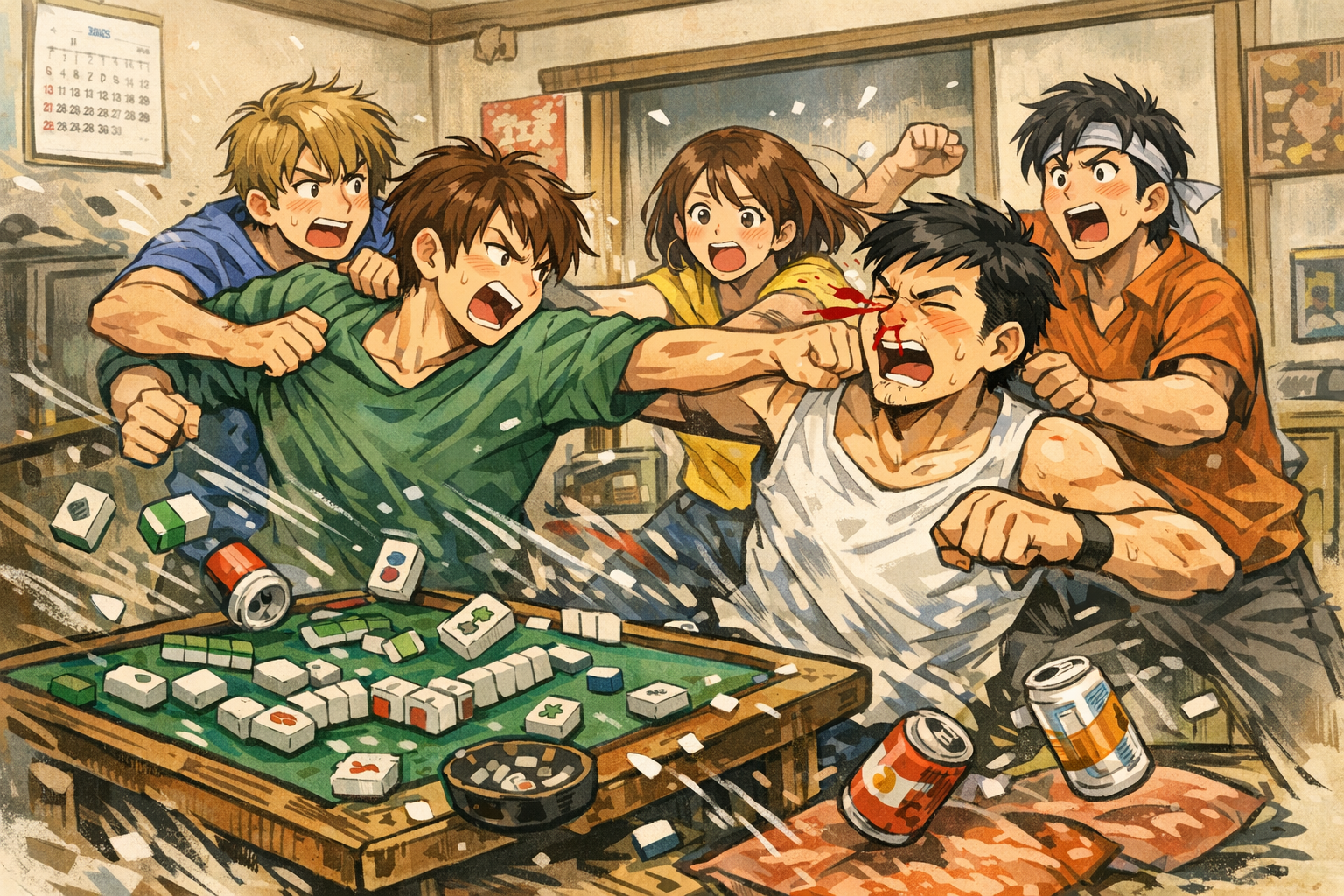そこでいきなり「議論・激論」が始まり、そのまま「激高した友人」がマージャンのテーブルから立ち上がったと思うと、「殴り合い」が始まってしまったのですよ。