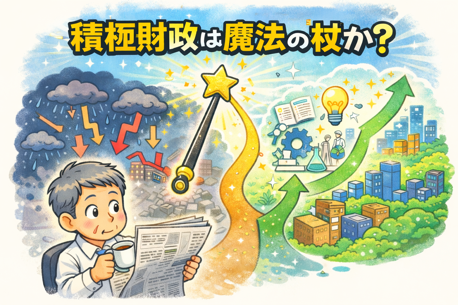 そんな「今月は病院通いが多いコロちゃん」が、今日は「積極財政は魔法の杖か?―成長と借金の分かれ道」をカキコキしますね。