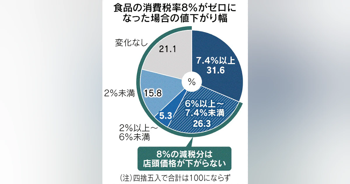 今日の冒頭の記事では、「食料品の消費税率8%」がゼロになっても、「8%の減税分の店頭価格が下がらない可能性」もあると書いていましたよね。
