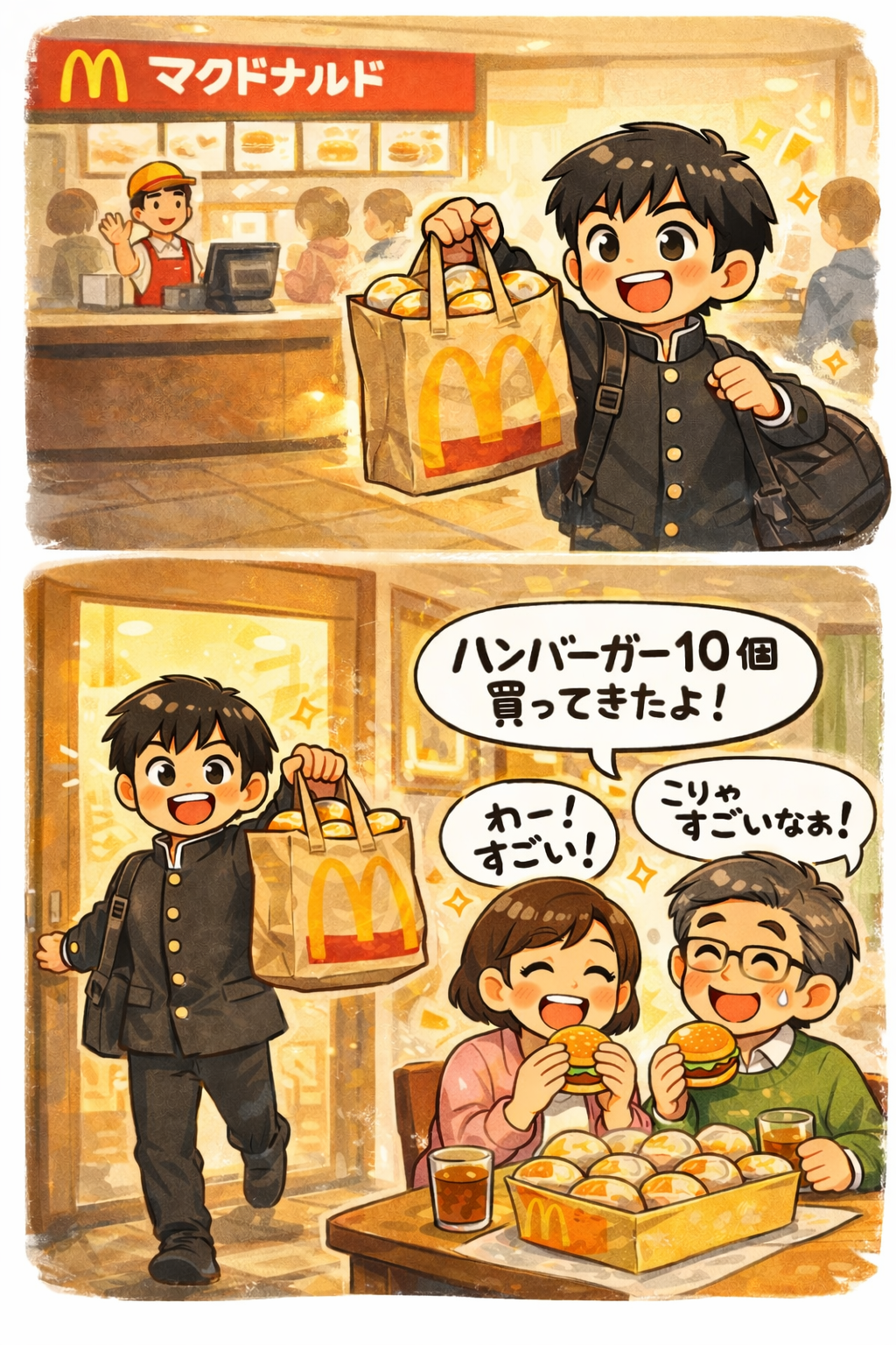 そうしましたら、その後「高校生だった次男」が「マックのハンバーガー10個」を買ってきて帰宅してきたのですよ。