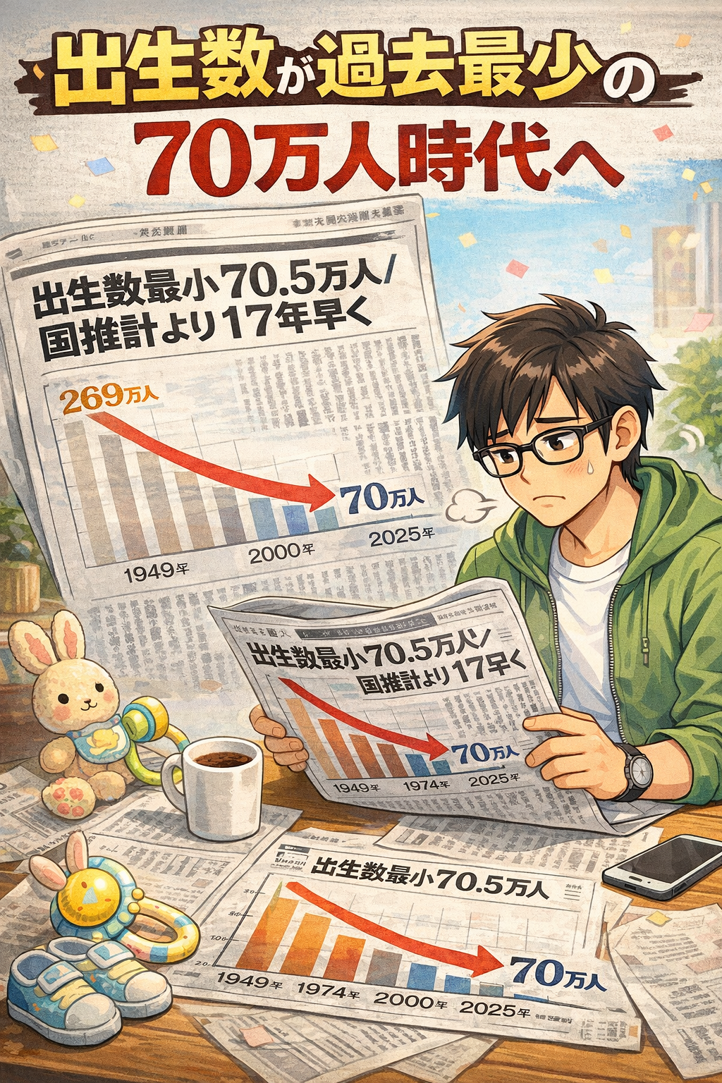 1.「昨年2025年に生まれた赤ちゃんが70万人だって」