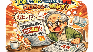 社会 【社会考】「70歳まで働くのが当たり前」の世論に、コロちゃんが物申す! 0.「今日の記事のポイント」 byコロちゃん 今日の記事は、下記のような内容になっていますよ。どうぞ最後まで楽しみながらお読みください。 ☆「70歳になっても働くが4割超えだって?と、ボリュームゾーンは65~69歳リタイアだ... 2026.03.15 社会
