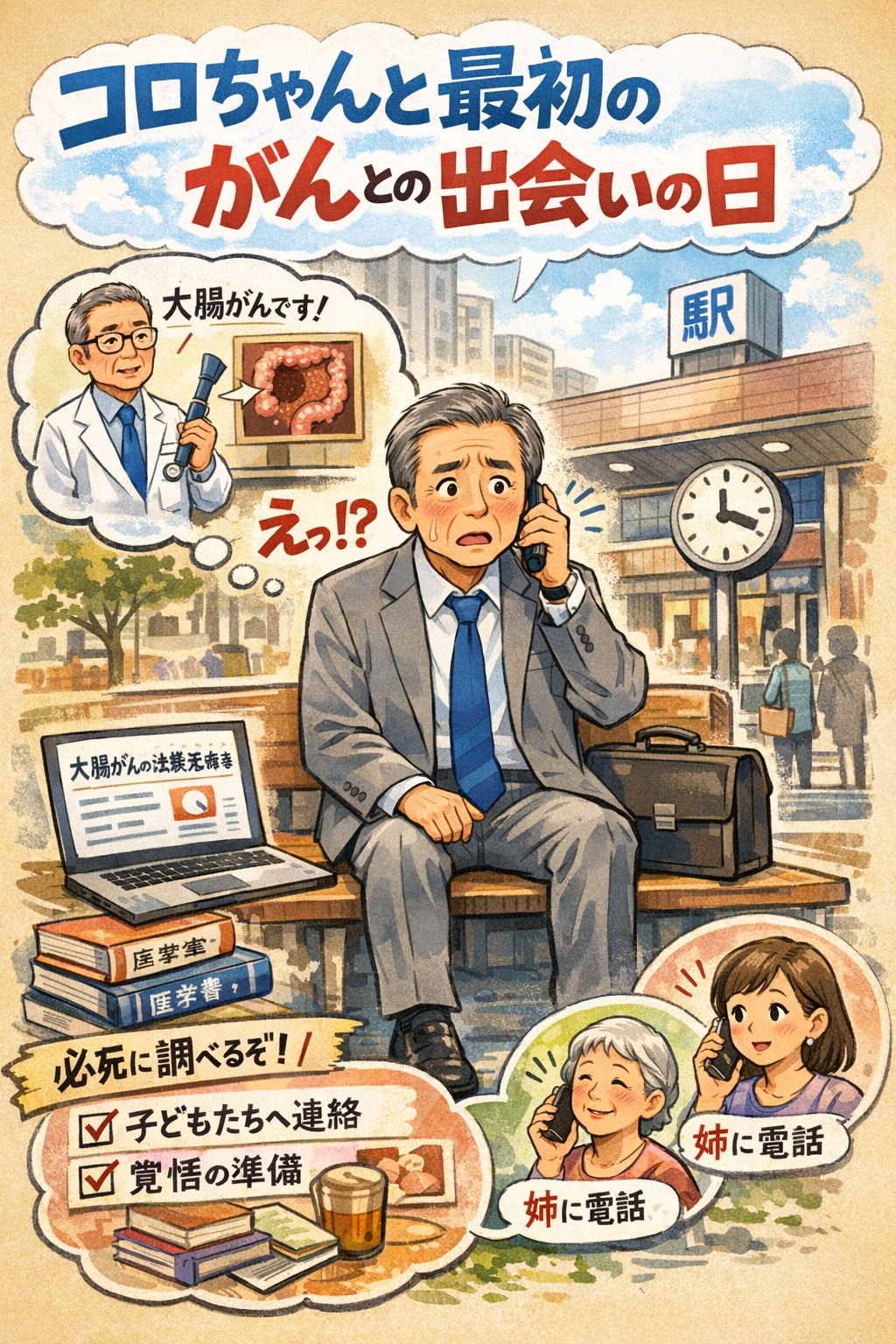 その「大腸がんに罹患したこと」を初めて知った日に、コロちゃんは会社に通勤しようとして「駅前」にいました。