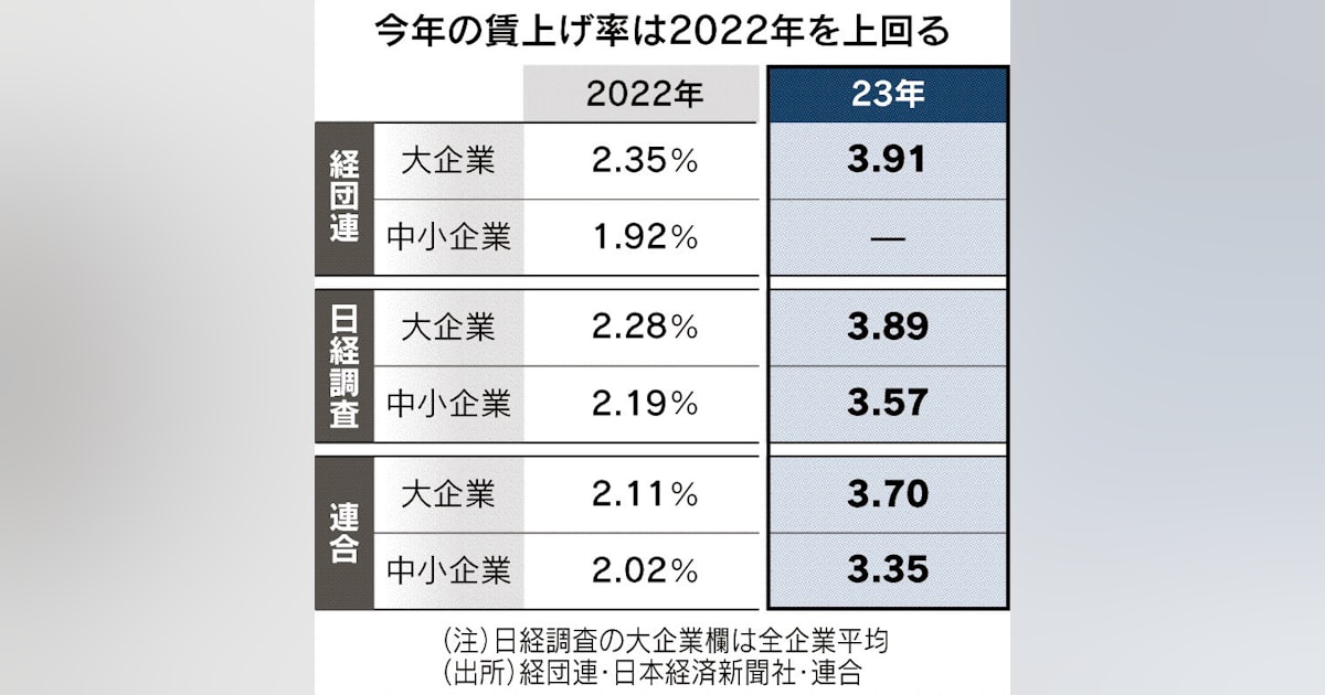 中小企業の雇用者は3200万人で、全雇用者の7割と言われています。この方たちへ「賃上げ」がどのくらい波及するでしょうか。