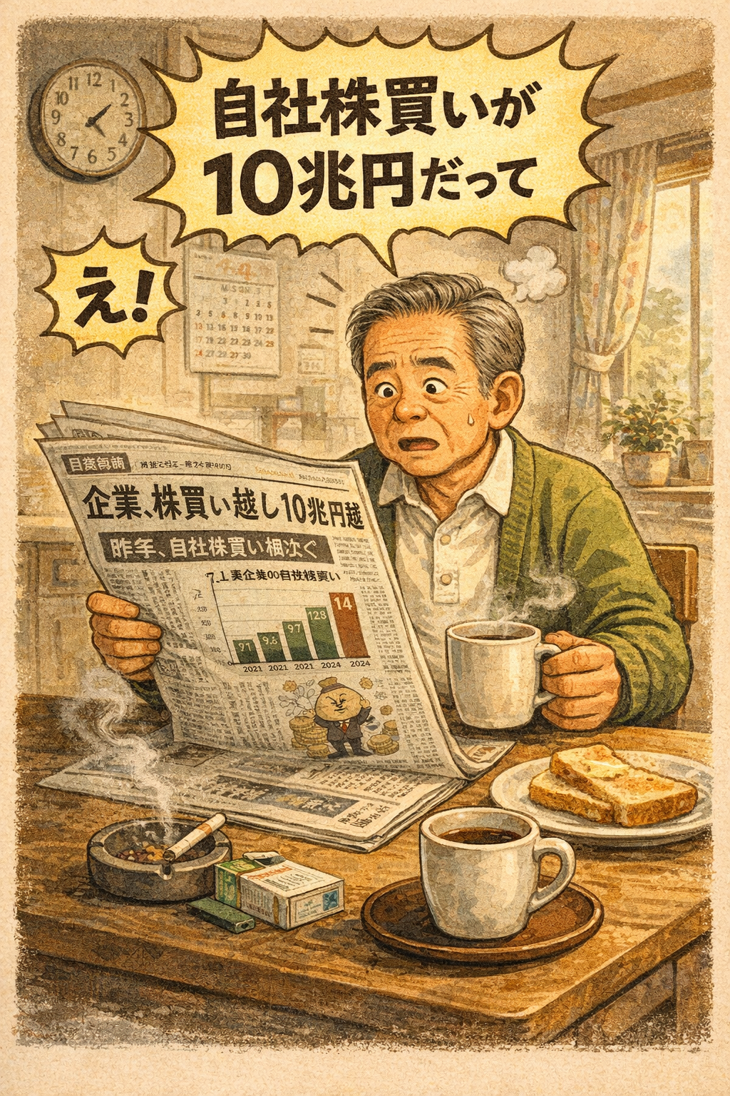 コロちゃんが、朝コーヒーを飲みながら新聞をバサバサ読んでいると「企業、株買い越し10兆円超/昨年、自社株買い相次ぐ」との見出しが目に入りました。