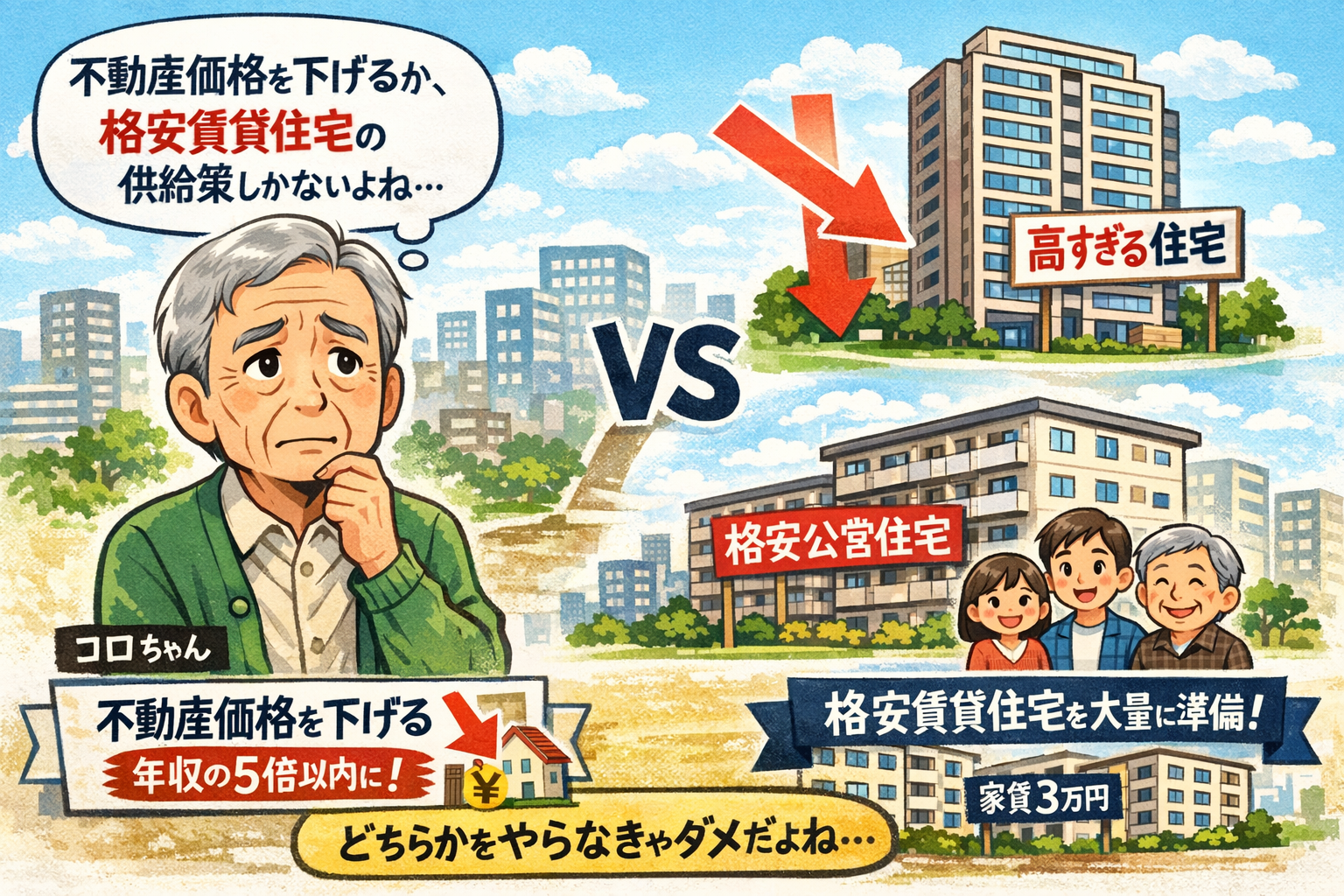 だからコロちゃんが、現在の「住宅価格の高騰」を見ていての「解決策」は以下の2点ですよ。