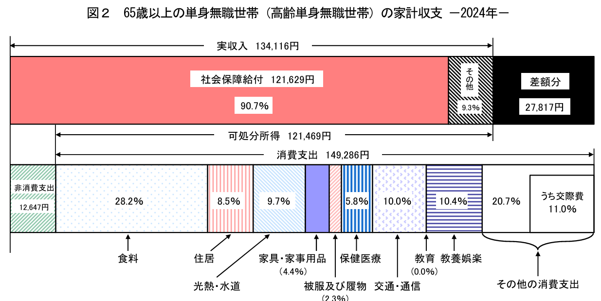 ふーむ、コロちゃんのような「単身無職高齢者の生活費」は、毎月「2.7万円の赤字」なんですね。